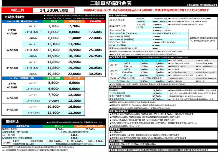 Honda Dreamで法令及びHondaが指定する点検整備実施した車両。